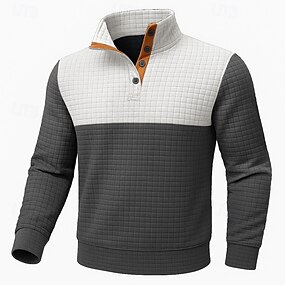 Homme Sweat-shirt Noir Bleu Gris Henley Bloc de Couleur Patchwork Sport & Loisir Quotidien Fête Polyester Velours côtelé Streetwear Basique Occasionnel Printemps Automne Vêtement Tenue Pulls Capuche