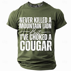 T-shirt graphique pour homme - "Je n'ai jamais tué de puma mais j'ai étranglé un cougar" T-shirt humour drôle à manches courtes