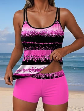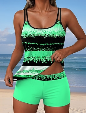 Maillot de bain deux pièces pour femmes bikini jupe colorblock mode de vacances graphique à rayures décolleté en V sans manches
