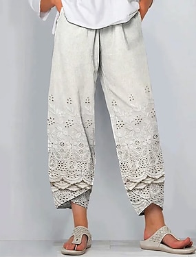 Femmes Faux coton lin Pantalon d'été Pantalon palazzo Mode Streetwear Confort Longueur cheville Taille Moyenne Fleur / Floral Avec Poches Taille Élastique Confortable Extérieur Rue Tenue quotidienne