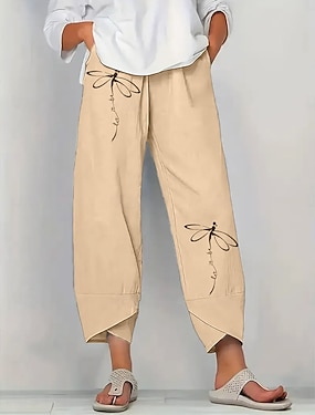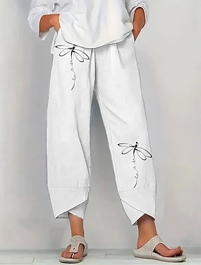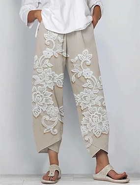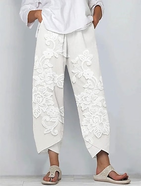 Femmes Faux coton lin Chinos Pantalon d'été Pantalons Actif Décontracté Quotidien Long Taille haute Fleuri Avec Poches Taille Élastique Impression Respirabilité Doux Micro-Élastique Vacances Rue