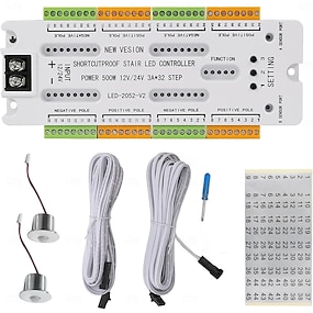 Détecteur de mouvement à 32 canaux, contrôleur d'éclairage d'escalier automatique à LED, résistant aux courts-circuits, luminosité réglable pour éclairage intérieur sous escalier DC12-24V