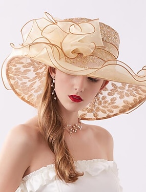 Chapeaux Fibre Chapeau de seau Capeline Chapeau de soleil Mariage Fête du thé Elégant Mariage Avec Fleur Détail Perle Casque Couvre-chef