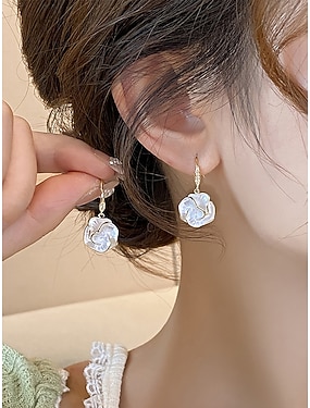 Boucles d'oreilles pendantes élégantes en forme de rose pour femme – alliage plaqué or avec pétales nacrés, style vintage romantique, idéales pour les mariages, les fêtes et les occasions formelles