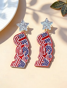 Boucles d'oreilles pendantes patriotiques en acrylique pour femmes, ornées de tournesols, d'étoiles et de cœurs, aux couleurs du drapeau américain. Idéales pour le 250e anniversaire des États-Unis, la fête de l'indépendance, et parfaites pour une tenue dé