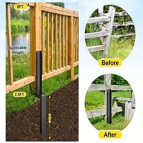 Kit de réparation de poteaux de clôture en métal robuste avec ancrages en acier pour support en bois incliné et endommagé