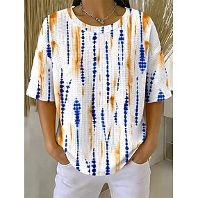 Femmes T-shirt Imprimé Teinture par nouage Mode Élégant Occasionnel Manche Courte Col ras du cou Hauts Réguliers Quotidien Sortir Week-end Bleu Ciel Été Printemps