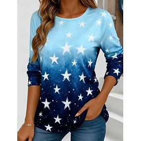 Nouvel An Femmes T-shirt Imprimé A Ombre Graphique Etoile Élégant Occasionnel manche longue Col ras du cou Hauts Réguliers Quotidien Week-end Bleu Été Printemps Automne