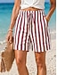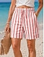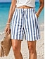 Femmes Short en coton et lin Chinos Shorts Vacances Basique Occasionnel Court Taille haute Rayure Avec Poches Ceinture Élastique Rayé Confortable Confort Respirabilité Élastique Extérieur Vacances Rue