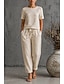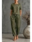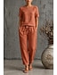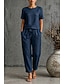 Femmes Ensembles en coton et lin T-shirt Manche Courte Demi Manches Col ras du cou Col rond Uni Mode Date Bleu Vert Véronèse Orange Printemps & Été