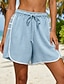 Femmes Bermuda Short en coton et lin Shorts Shorts d'été Vacances Mode Streetwear Court Taille haute Avec Poches Ceinture Élastique Confortable Doux Respirant Élastique Quotidien Extérieur Rue Bleu