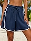 Femmes Short en coton et lin Joggings Chinos Shorts Vacances Mode Streetwear Court Taille haute Uni Ceinture Élastique Confortable Doux Respirant Élastique Extérieur Vacances Rue Bleu Bleu marine