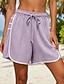 Femmes Short en coton et lin Chinos Shorts d'été Shorts de plage Vacances Mode Style Classique Longueur Genou Taille Moyenne Couleur Unie Cordon de serrage Taille Élastique Léger Respirant Non