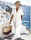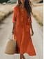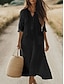 Femmes Robe maxi Coton mélangé Robe fourreau Robe Décontractée Basique Occasionnel Quotidien Vacances Coupe régulière Uni Manche 3/4 Col en V Rouge Kaki Vert Véronèse Bleu de minuit Été