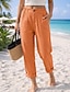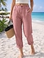 Femmes Faux coton lin Pantalon d'été Vacances Basique Longueur complète Taille moyenne Uni Cordon de serrage Confort Micro-Élastique Quotidien Bleu Vert translucide Abricot Gris Été Printemps