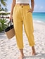 Femmes Pantalon en coton et lin Pantalon d'été Pantalons Vacances Basique Décontracté Quotidien Longueur complète Naturel Uni Cordon de serrage Poche Avant Confort Respirabilité Confortable Non