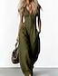 Femmes Faux coton lin Élégant Sans manches Jambe large Col en V Quotidien Vacances Coupe régulière Marron foncé Noir Blanche Été
