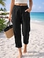 Femmes Pantalon capri Faux coton lin Slacks Shorts d'été Occasionnel Longueur mollet Naturel Uni Avec Poches Taille Élastique Confortable Extérieur Extérieur Week-end Gris Noir Blanche Vert Été Coupe