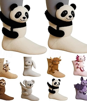 Chaussettes d'animaux en tricot 3D, chaussettes d'animaux amusantes crochetées à la main, chaussettes d'hiver en coton, amusantes &adorables cadeaux de Noël pour les filles & femmes