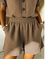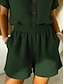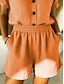 Combinaison-short femme, style streetwear, couleur unie, sans manches, col rond, boutons à volants, imitation coton et lin, coupe classique, noir, blanc, rouge, été
