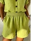 Short en lin et coton synthétique pour femme, bermuda, pantacourt, coupe capri, décontracté, taille mi-haute, uni, poches latérales, respirant, confortable, non élastique, idéal pour les sorties du week-end, noir, blanc, jaune, vert, été