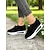 baskets à enfiler en tricot noir pour femmes – chaussures décontractées élégantes avec accent de talon doré, légères et confortables à porter au quotidien