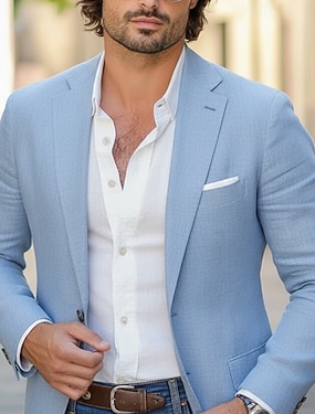 Homme Blazer en lin Col cranté Mode Léger Classique Couleur Unie Blazer Blanche Bleu Ciel Kaki Coupe sur mesure à boutonnage simple à 2 boutons