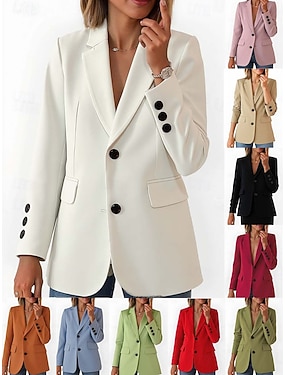 Femmes Blazer Coupe-vent Confortable Boutons Noël Élégant Actif Mode Couleur Unie Formel Noël Anniversaire Simple Boutonnage Régulier Revers Cranté Coupe régulière manche longue Vêtements d'extérieur
