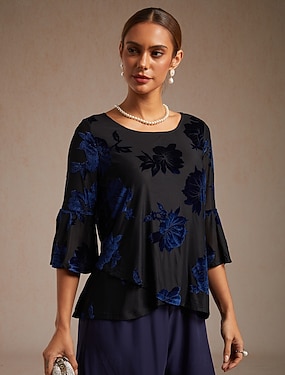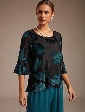 Femmes Hauts Élégants Broderie Fleuri Paisley Élégant Manche 3/4 Col en V Hauts Réguliers Travail Soirée Semi-Formel Noir Printemps Automne Hiver