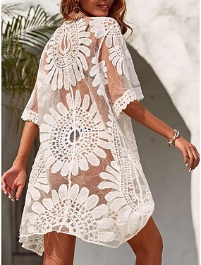 Femmes Maillots de Bain Vêtement couvrant Robe de Bain Maillot de bain Dentelle Vacances Tenues de plage Fleuri Col en V Manches courtes Maillots de bain