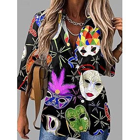 Carnaval Femmes Chemisier Imprimé Graphique Abstrait ancien Quotidien Élégant Manche 3/4 Col en V Hauts Réguliers Quotidien Fête Vêtements de vacances Bleu Été Printemps Automne