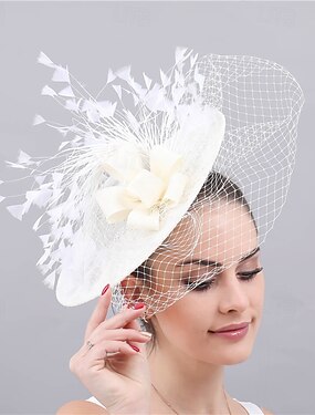 Fascinators Sinamay Mariage Anniversaire Élégant Mignon Rétro Avec Plume Tulle Casque Couvre-chef