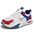 Baskets de running rétro colorblock pour homme, blanches, bleues et rouges, légères, idéales pour la marche, l'entraînement et un style urbain décontracté.