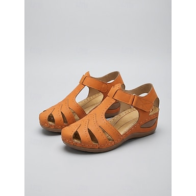 Sandales orange pour femmes, à bout fermé et bride velcro – sandales romaines légères et rembourrées, idéales pour les voyages, les promenades en extérieur et les balades dans le jardin. &vêtements de