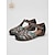 Sandales plates confortables à bride en T et boucle réglable, en cuir tressé couleur café, idéales pour l'été, la campagne, le jardin et le quotidien.