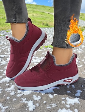 Bottes d'hiver imperméables bordeaux doublées de polaire pour femme – chaussures de neige chaudes à enfiler avec semelle antidérapante pour temps froid, marche en extérieur et tenue décontractée au quotidien