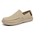 Chaussures beiges en toile pour homme, à enfiler, construction souple et légère, style décontracté minimaliste, adaptées au quotidien, aux voyages et aux loisirs.