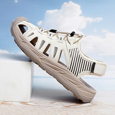 Sandales de sport beiges pour homme – modèle confortable en maille respirante, ajustement réglable pour la plage, la marche et l'été