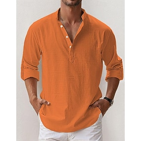 Homme Chemise Chemise à col officier Chemise d'été Tenue de plage Chemise Décontractée Chemise Boutonnée Uni Vacances Hawaïen Blanche Bleu Ciel Orange Vert manche longue Col montant Vêtement Tenue