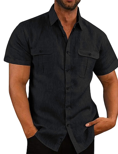 Homme Chemise Chemises de travail Chemise Décontractée Chemise de travail Chemise Boutonnée Noir Bleu Kaki Vert Véronèse Gris Manche Courte Uni Revers Vacances Fête Avec Poches Vêtement Tenue 100