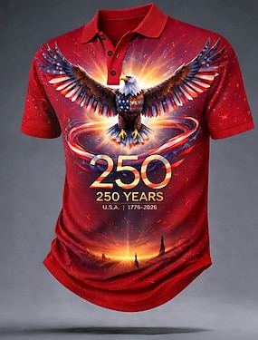 Jour de l'Indépendance Homme Drapeau Américain 4 juillet, 250e anniversaire des États-Unis Aigle Chemise Chemise d'été Chemise Boutonnée Manche Courte Mode Décontractée Fête Été Printemps Col Rabattu