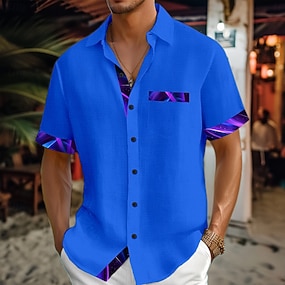 Homme Chemise en lin Chemise d'été Tenue de plage Chemise Boutonnée Cocotier Plage Vacances Bleu Rose Claire Vert Kaki Manche Courte Col Rabattu Été Printemps Vêtement Tenue Bloc de Couleur