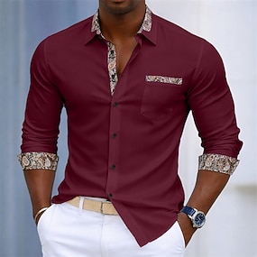 Homme Chemise Chemise d'été Tenue de plage Chemise Décontractée Chemise Boutonnée Chemise Satiné Noir Vin Bleu Vert manche longue Uni Col Rabattu Vacances Quotidien Vêtement Tenue Coton Mélange de