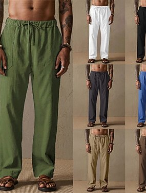 Homme Pantalon en lin Pantalon pantalon été Pantalon de plage Cordon Taille elastique Jambe droite Plein Confort Respirable Toute la longueur du quotidien Vacances Fête de Mariage Mode Style classique