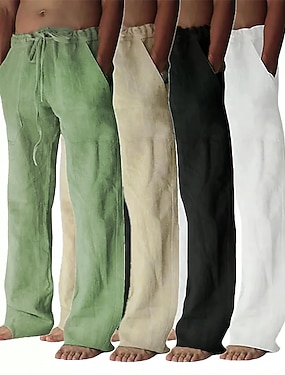 Homme Pantalons en Lin Pantalons Pantalon d'été Pantalons de Plage Cordon de serrage Taille Élastique Pack multiple Uni Confort Longueur complète Extérieur Occasionnel Quotidien Vacances Streetwear
