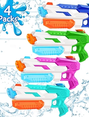Lot de 4 pistolets à eau pour enfants et adultes, super pistolet à eau à longue portée et grande capacité pour garçons et filles, piscine d'été, plage, extérieur, jouets de combat d'eau, cadeaux de fête (aléatoire)