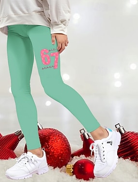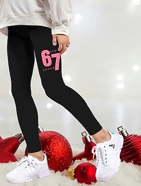 Fille 3D Graphique 67 Pantalons Leggings Printemps Automne Mignon Streetwear Basique Enfants 4-12 ans Extérieur Vacances Occasionnel Mince