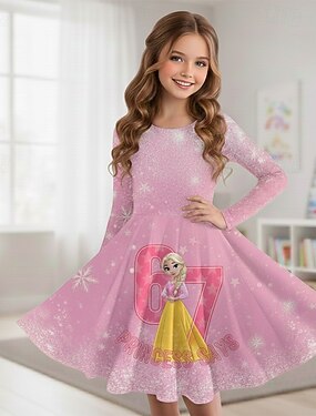 FILLE 3D Etoiles Robe Manche Courte Été Printemps Quotidien Vacances Fête Princesse Beau Doux Enfants 4-12 ans Robe Décontractée Mi-long Coupe régulière