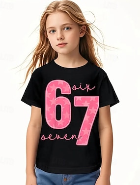 Coton Enfants Fille Noir Graphique Argot drôle 67 T-shirt Col Rond Manche Courte Vacances Sport & Loisir Tenue Quotidienne Occasionnel Impression Été