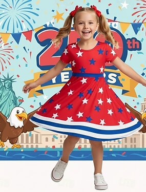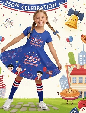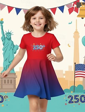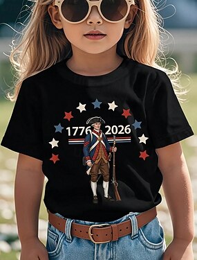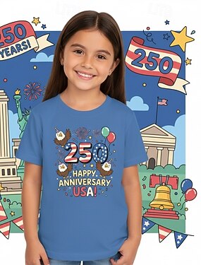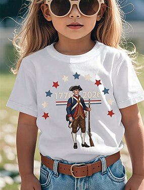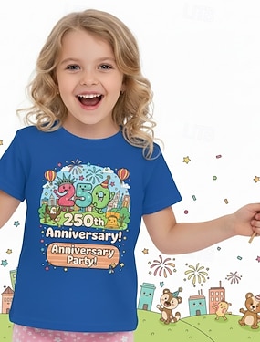 Fille 3D Graphique 250e anniversaire T-shirt Manche Courte Impression 3D Été Printemps Sports Mode Streetwear Enfants 4-12 ans Col Rond Occasionnel Quotidien Extérieur Coupe régulière